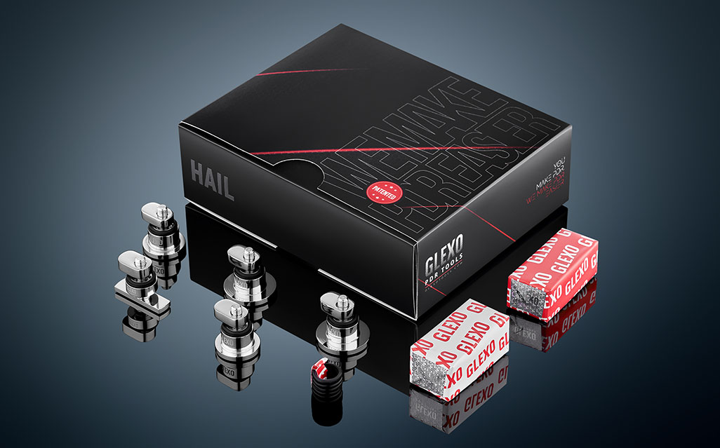 Набор Glexo Hail специально разработан для помощи техникам при ремонте мелких повреждений и повреждений от града. Ремонт града — это сложная работа, где важно экономить время. Поскольку при непрерывной работе холодный клей может перегреваться, что влияет на его эффективность, система Glexo Hail включает дополнительные грибки, позволяя работать без перерывов.
